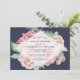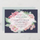 O nosso chá de panela de Pequim Antiquado é uma bela escolha para as noivas modernas e modernas, numa paleta colorida de rosa-pincel, azul-marinho e verde-sábio. Design apresenta um fundo de flores cor-de-água rosa e verde em azul-da-meia-noite com uma camada de diamante branco puro contendo detalhes do seu chá de panela em letras azuis-da-meia-noite.