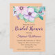 Um anúncio colorido e bonito do chá de panela de damasco com um tema floral. O topo do cartão apresenta um adorável arranjo floral de flores coloridas pastel e bagas roxas. O mesmo arranjo floral está no verso do cartão. Todos os detalhes podem ser personalizados facilmente para se adequar.
