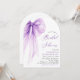 Defina o tom para uma celebração de na moda com um Chá de panela de Arco roxo moderno de tendências. Apresentando um design branco e roxo chico com um sotaque arco elegante, este convite combina a sofisticação do eterno com um toque elegante inspirado em coquete, perfeito para honrar a noiva de uma forma elegante e charmosa.