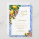 Limões num buquê floral sobre um fundo de azulejo azul e branco do estilo mediterrânico da Toscana. A informação é facilmente obtida através do modelo para o seu próprio Chá de panela personalizado. Limão e cores azuis evocando uma sensação de verão para a sua design de inspiração italiana.