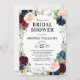 Convite Chá de panela Azul Floral Dourado Burgundy