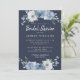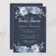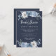 Chá de panela azul-poeirento floral com caligrafia branca elegante com script manuscrito e tipografia clássica, e na moda com rosa de aquarela pintada em uma paleta azul-esbranquiçada, marfim e cor verde sobre fundo azul-escuro. Desenvolvido exclusivamente para você pelo Happy Dolphin Studio. Se precisar de ajuda ou produtos correspondentes, entre em contato conosco através do bate-papo da loja. Estamos felizes em ajudá-lo a fazer seu chá de panela o dia mais maravilhoso!