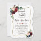 Design de cartão elegante com maravilhosas merlot de aquarela e buquês de flores azuis marinhos, faux gold frame, divisor floral, belos guiões de escrita manual e fontes especiais. Pode ser uma escolha excelente para qualquer casamento da temporada, especialmente para casamentos outono e inverno. Use a ferramenta Personalizar para adicionar suas informações e fazer alterações. Para obter itens correspondentes, visite minha Coleção Floral Azul Merlot & Marinho.