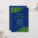 Um marinho elegante, chá de panela azul e verde. Apresentando um clássico design de azul marinho com espirais verdes e florescentes. Personalize facilmente o seu evento.