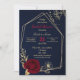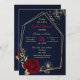 Convite chá de panela azul marinho floral de ouro burgundy