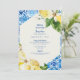 Chá de panela. Limões mediterrânicos azuis. Fonte moderna. Design moderno. Azul e amarelo.