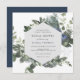 Trendy, convite de chá de casamento quadrado enquadrado pela folhagem de cor d'água de Holly, Evergreens e flores de inverno. Personalize com suas informações para o dia do chá. Clique em "clicar para personalizar mais" para alterar o estilo, o tamanho, a cor ou a cor de fundo da fonte.