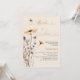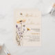 Um fundo cor bege. Decorado com abelhas e pintado flores silvestres em violeta e rosa. Personalize e adicione um nome e detalhes da parte. Sexo neutro. Texto: Noiva a abelha