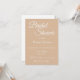 Estilo simples, chá de panela que apresenta um fundo de cor bege e, junto com o nome da futura noiva, o tempo e o local do evento de festa, o contato etc., impresso em letras brancas e estilizadas. Personalize o seu convite substituindo o texto pelas suas próprias informações de chá de panela. Selecione o estilo e a quantidade do seu papel de convite.