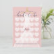Cartão de jogo de chá de panela de bingo de chá de panela e diversão. Jogo divertido para jogar na sua festa de chá de panela. Vestido cor-de-rosa pincelado elegante com cabide dourado exibido no fundo. Arte original e design por Paparia de Moodthologia.