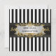 Black & White Stripe, Black Ribbon, Dourado Framed Label Invitation Suite - Chá de panela ========= Este design personalizável apresenta faixas pretas e brancas, uma faixa preta e uma etiqueta branca de gradiente em uma estrutura de aparência dourada. É parte de um conjunto de designs compatíveis que são facilmente personalizáveis para muitas ocasiões e eventos. Se você precisar de placas RSVP separadas, Notas de agradecimento, Carimbos, ímanes ou outros acessórios, por favor verifique nossas outras listas.