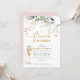Beleza e diversão com este convite de almoço de champanhe de brunch e Chá de panela borbulhante desenhado com galhos de uísque e eucalipto macio dourados, e um fundo cor-de-rosa pincelado na parte de trás da carta. Personalize facilmente com o nome da noiva e outras informações importantes.