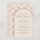 Convites de chá de panela simples e bonitos criados usando lindas flores pintadas à mão em tons de rosa. Arte original de Leslie Larson.