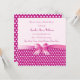 Um bonito Chá de panela cor-de-rosa com fundo rosa pálido, uma banda cor-de-rosa de cerco profundo no topo com bolinhas brancas e um arco decorativo em tons de rosa. Papel de carta totalmente personalizável que pode ser redefinido para qualquer ocasião. Especialmente adequado para o Aniversário, Graduação e Bat Mitzvahs.