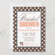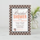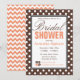 Convites de chá de panela brancos e na moda com bolinhas brancas sobre marrom na frente e um padrão de gíria cor de laranja e branco zigzag no verso. Personalize com os detalhes do chá do futuro noivo e escolha seu tipo de papel também! Perfeito para outono/outono, ou a qualquer momento do ano.