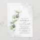 Chá de panela de aquarela Eucalyptus Script Floral Invitation com um moderno design botânico minimalista em fundo branco com tipografia popular, você pode facilmente editar DICA: Veja abaixo outros itens de eventos de preparação de casamento e pré-casamento, incluindo convites de chá de panela, cartas de agradecimento, etiquetas de champanhe, etc. para este design!