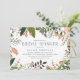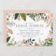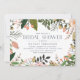 O chá de panela inspirado pela natureza Chic apresenta uma borda de flores cor-de-rosa e cor-de-pêssego com folhas verdes e botânicos. Personalize com seu chá de panela e detalhes do registro em letras elegantes azuis.