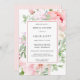 O design botânico moderno tem peônias cor-de-rosa pinceladas aninhadas em folhas verdes seniores. Os detalhes do seu chá de panela são colocados no centro. Eles também estão cercados por uma estrutura cintilante rosa. Este chá de panela é parte da coleção de Pequim Rosa Russo. Contém muitas modelos de casamento DIY que permitem criar facilmente o seu convite e as suas entregas de chás de panela.