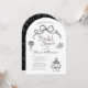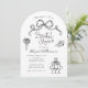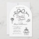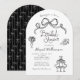 Chá de panela De Mão Branca E Preta. Um estilo de moda com rabiscos fofos de arcos, coquetéis empilhados, flores e saltos altos em conjunto com fontes impressionantes e divertidas de estilo manuscrito. Todas as cores são editáveis por você! © Kimbellish, LLC