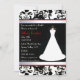 Chá de panela formal feito em uma cor damasco do preto, a branca, na parte superior e na parte inferior. Um vestido de casamento bonito em um suporte decorativo decora o lado direito do convite, e a beira vermelha afia um cetim branco que olha a fita, em cada lado da área de texto preta. Personalize o texto para serir suas necessidades do partido.