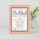 Convites de chá de panela de corte e na moda com um padrão zigue-zag cor de laranja e branca. Personalize com os detalhes do chá do futuro noivo e escolha seu tipo de papel também!