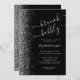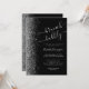 A borda esquerda deste elegante e moderno brunch e chá de panela borbulhante apresenta uma borda cintilante prateada. O texto personalizável combina a escrita manual de cinzas prateadas, fontes copperplate e itálico em um fundo preto. O verso apresenta um design preto e prateado correspondente.