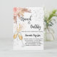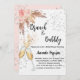 Um convite moderno, na moda e glamouroso para um Chá de panela de bolinho. Um fundo branco com bolhas, um par de flautas, óculos, rosas cor-de-rosa pinceladas e grama-pampas. O nome é escrito com um moderno estilo escrito à mão. Personalize e adicione os detalhes da sua festa.