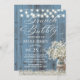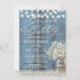Convites de chá de panela de madeira azul-celeiro de Brunch e Bubble Rustic Baby's Breath Floral Mason Jar Dusty.