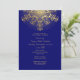 Floco de neve Dourado no chá de panela casamento no inverno azul que apresenta um floco de neve ouro sobre fundo azul. Esta design personalizada é uma modelo completamente personalizável e faz parte de um jogo perfeito para um casamento de inverno ou Natal.
