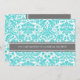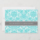 Convites de chá de panela em elegante azul-azul-azul-azul-turquesa, cinzas de carvão escuro e cor damasco floral típica de vintage branca, chic e feminina, personalizáveis com seus detalhes de chá. Também disponível em cartões de agradecimento e convites para a festa noiva.