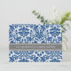 Convites de chá de panela em elegante marinho azul escuro, cinzas de carvão escuro e cores damasco florais clássicas de vintage branca, chic e feminina, personalizáveis com seus detalhes de chá. Também disponível em cartões de agradecimento e convites para a festa noiva.