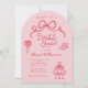 Chá de panela Retrópico Branco Cor-de-rosa e vermelho. Um estilo de moda com rabiscos fofos de arcos, coquetéis empilhados, flores e saltos altos em conjunto com fontes impressionantes e divertidas de estilo manuscrito. Todas as cores são editáveis por você! © Kimbellish, LLC