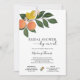 Um chá de panela por correio é perfeito para aqueles que não podem estar com entes queridos, mas que ainda querem chá para a noiva estar com amor e presentes. Este chá de longa distância por convite por correio apresenta uma bela cascata de laranjas, limões e verde. Personalize com seu texto. Clique em "Personalizar mais" para editar o estilo, o tamanho e a cor da fonte, se desejar.