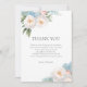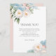 Adicione seus cartões de agradecimento personalizados ao Chá de panela com este design elegante com uma decoração de flores azul e rosa e uma folhagem verde elegante nos cantos. Reservatórios de cartão em cor-de-rosa empoeirado editável