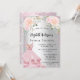 Um convite moderno, na moda e glamouroso para um Chá de panela. Um fundo com aspecto fino prateado com brilho sujo rosa, faíscas, um vestido e flores cor-de-rosa pinceladas. O nome é escrito com um moderno estilo escrito à mão. Personalize e adicione os detalhes da sua festa.
