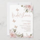 Blush Floral Glitter Butterfly Chá de panela moderno chá de panela temático da borboleta apresentando um estilo boêmico, blush arranjos florais com alguma folhagem de eucalipto e um título de caligrafia moderno e três borboletas de ouro rosa claro e sujo.