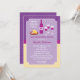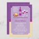 Chá de panela de travamento moderno, feminino e do olho. Ideal para recolher namoradas e hospedar um evento da degustação de vinhos. Caracteriza uma garrafa de vinho, vidros de vinho e uma placa de queijo em uma paleta de cores roxa e amarela. Excelente para uma noiva sofisticada com um amor para a comida do vinho e de gourmet. Adicione seu próprio fraseio. Fundo do teste padrão de bolinhas.