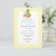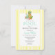 Preppy Tropical Summer Poolside Chá de panela com abacaxi de aquarela e bebida com fundo de listras amarelas e brancas Perfeito para alguma diversão ao sol com sua melhor garota na celebração da noiva.
