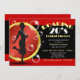A era é a década de 1920, o tema é os vinte anos itinerantes, e a premissa é o bebendo (água gigante) e ter excelente tempo para celebrar a noiva e o noivo para comemorar o Chá de panela! Esses convites personalizados de chás do Roaring 20 são projetados em cores vermelhas, douradas e pretas, com uma silhueta de menina flapper e bolhas brilhantes. Embora esses convites sejam escritos para um casal, ele pode ser facilmente personalizado apenas para a noiva. Cartões de agradecimento Correspondentes (itens vendidos separadamente):