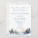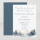 Um Chá de panela da Terra Maravilha de inverno: Amar Blooms na Frost. Design de Chá de panela de inverno com paisagem florestal de cor aquática e tipografia de tendências. O texto pode ser facilmente personalizado para um único design único para seu dia especial