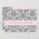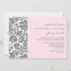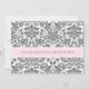Convites de chá de panela em elegante e brilhante cor-de-rosa-bebê, cinzas de carvão e cores damasco florais clássicas de vintage branca, chic e feminina, personalizáveis com seus detalhes de chá. Também disponível em cartões de agradecimento e convites para a festa noiva.