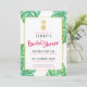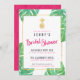 Convites de chá de panela modernos, ousados, cor-de-rosa-quente e dourados com acentos cor-de-rosa-quente, abacaxi de folha de ouro falso e folhas tropicais de cor-de-água à volta da borda.