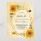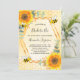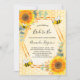 Elegante, divertido, chá de panela de verão rústico. Um fundo amarelo com um padrão alveolado. Com uma falsa estrutura geométrica dourada. Decorado com girassóis amarelos e laranja, eucalipto verde e boias felizes. Com o texto: Bride to Bee o nome da noiva na frente, escrito com um moderno estilo escrito à mão. Letras negras. Volta: padrão amarelo de mel e uma abelha feliz sorrindo.