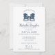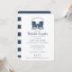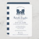 Marinho azul Adirondack preside chá de panela temático com listras azuis e brancas atrás deste elegante e clássico convite para a futura noiva e noiva. Personalize como preferido.