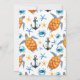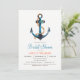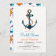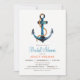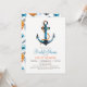 Chá de panela de ancoragem náutica. O convite apresenta a âncora náutica azul e o padrão da tartaruga marinha no verso.