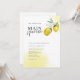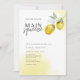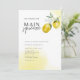 "Ela encontrou seu principal aperto" Comemora a noiva a ser com esse chá de panela de tema limão minimalista apresentando um galho aquoso com dois limões e flores.