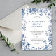 Convite Chá de panela de Aquarela Floral Branco Azul