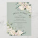 Este belo convite começa com um fundo pastel verde de sábio com lindas flores aquáticas em dois cantos. Adicione fontes simples a isso e ele é perfeito para seu evento especial. Um chá de panela maravilhoso.