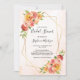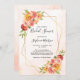 Estes convites de chá de panela apresentam um design floral de aquarela com coral, pêssego e flores rosadas e uma falso estrutura geométrica dourada. O fundo é a aquarela florada. Personalize o texto do convite com o seu próprio texto. Estes convites fazem parte de uma coleção que inclui uma série de artigos de papelaria de casamento e outros artigos de casamento. Visualize a página de coleta ou visite nossa loja para ver o intervalo de cheios.