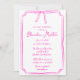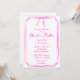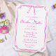 Este modelo elegante, de estilo manuscrito, apresenta um design desenhado à mão clássico com uma ilustração de arco caprichosa no topo. É apresentado num esquema de cores rosa e branca divertido, perfeito para dar o tom para uma celebração única e feminina.